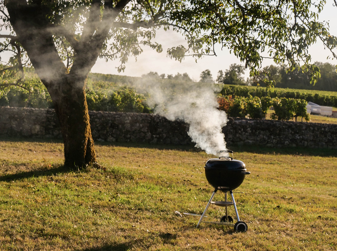 - Pour que la planche fume, elle doit être à la verticale du charbon, mais pas forcément entièrement. Vous pouvez pousser vos charbons d’un côté (ou utiliser des paniers à charbon) et placer la planche de l’autre avec un peu de juxtaposition. C’est très utile pour les cuissons longue, par exemple le filet de saumon.